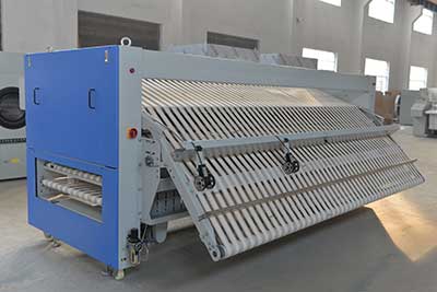 上航洗滌機(jī)械床單折疊機(jī)折疊后,層數(shù)增加,厚度增加。基本上采用正反轉(zhuǎn)和機(jī)械刀盤結(jié)構(gòu),能可靠完成布的折疊。一些折疊機(jī)采用簡單的升降板結(jié)構(gòu)折疊四次,但織物由輸送帶推出,折疊縫差,織物的厚度大不相同,因此不推薦使用。